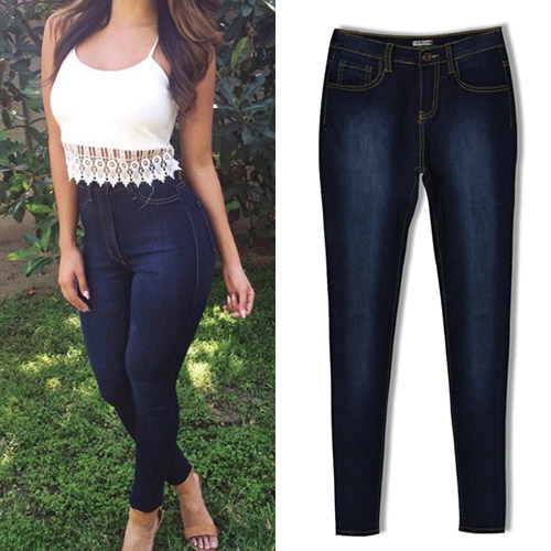 Crafted from soft and stretch fabric,with high waist and slim fit design,this skinny jeans is your