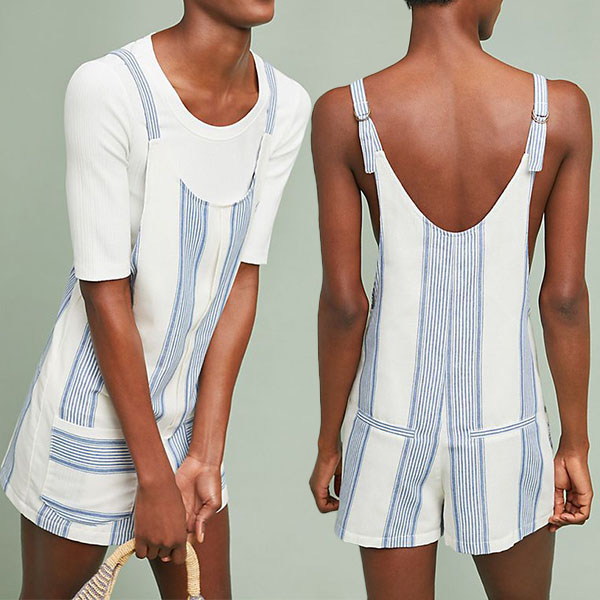 This overalls is designed with striped element,stylish and popular,while the high waist and fit silhouette