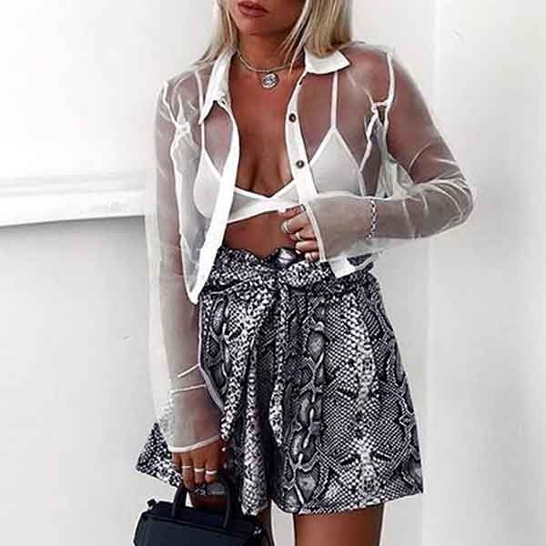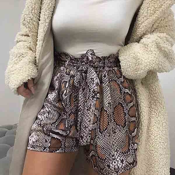 This shorts which is designed with snakeskin printed details will give you an eye-catching look,and the high