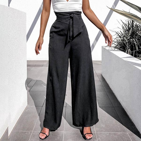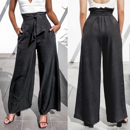 with the help of this piece? Solid color style,the high waist and wide-leg silhouette design can
