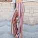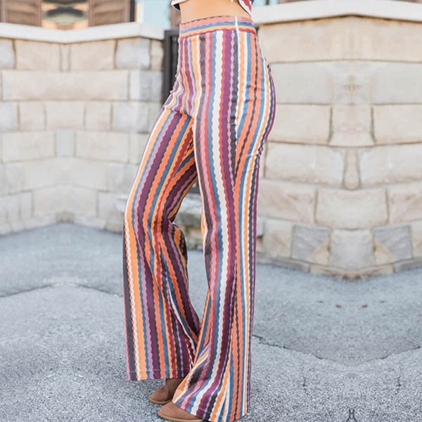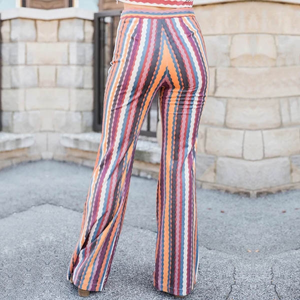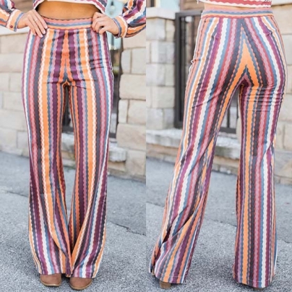 The pants is designed with colorful striped element,which makes it look so stylish and eye-catching,