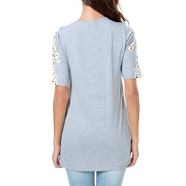 sleeve and round neck design,the hollow out lace spliced details will make this piece look more attractive.