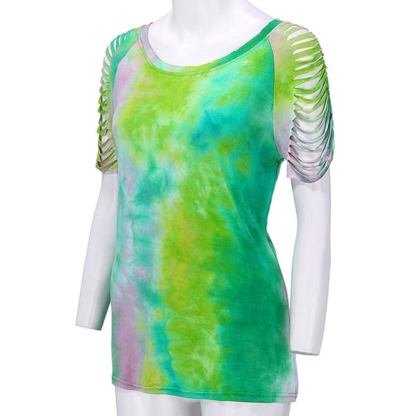 The hollow out design at the sleeve part and the tie-dye printed details make this