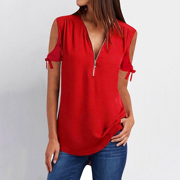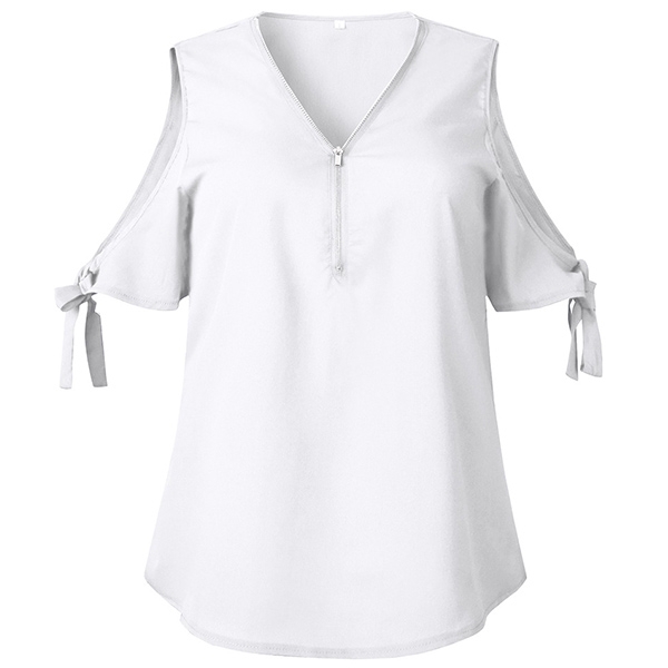 the hollow out design the the sleeve part and zipper v-neck design make this piece look so