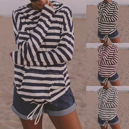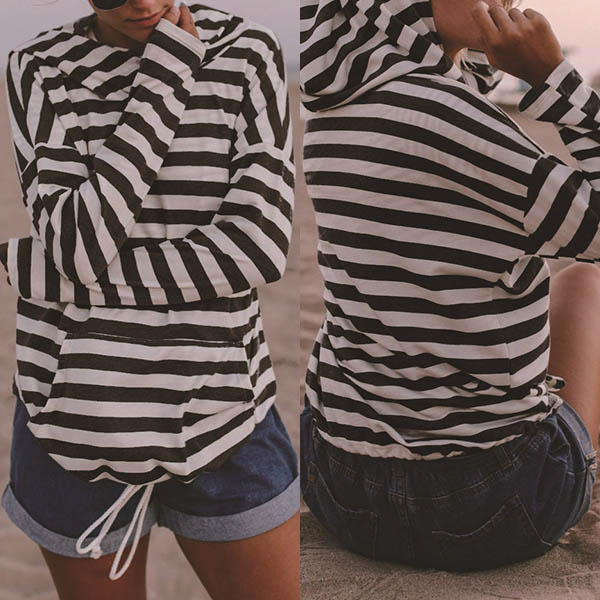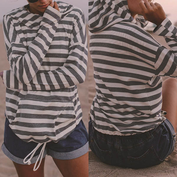 Bring a classic touch into your autumn wardrobe with this long sleeve stripe hoodie! This hoodie