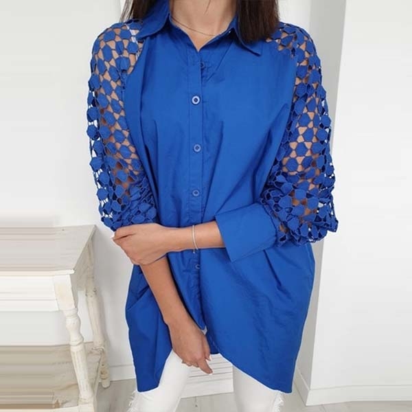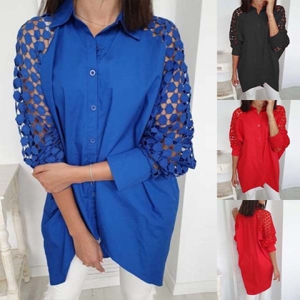 Add a touch of beauty to your look with this shirt. Solid color style,the lace spliced 3/4