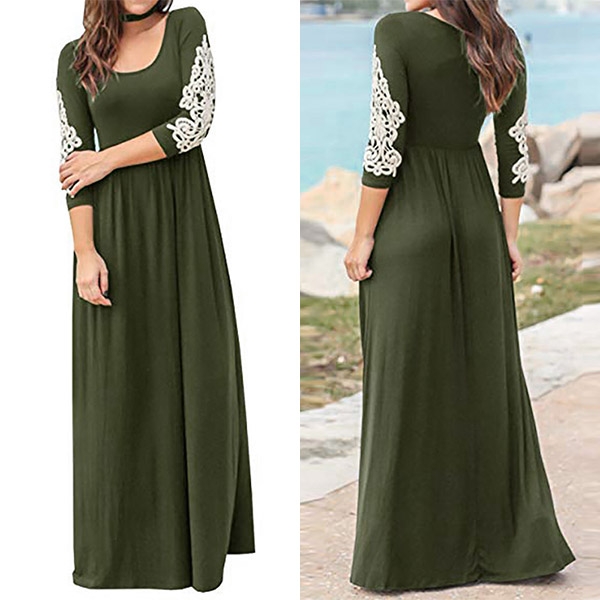 round neck,high waist and a maxi length,this dress knows how to display your slender figure.