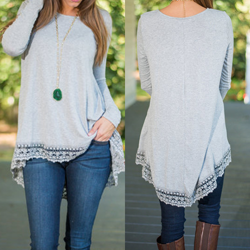 an all-day comfort. Solid color style,with long sleeve and round neck design. And its lace spliced