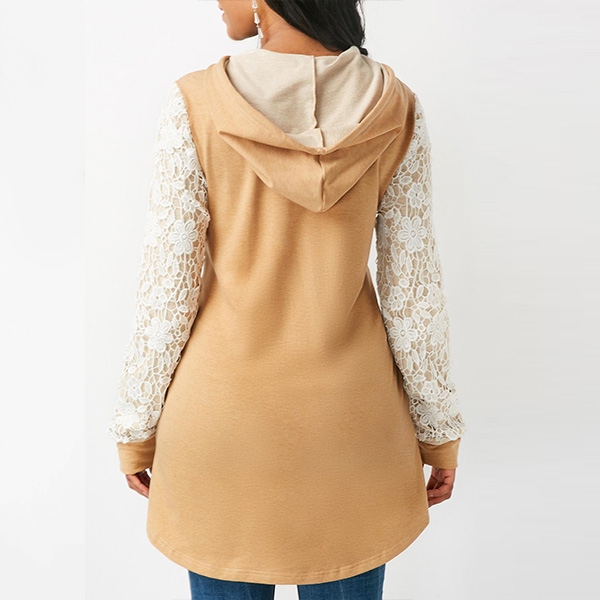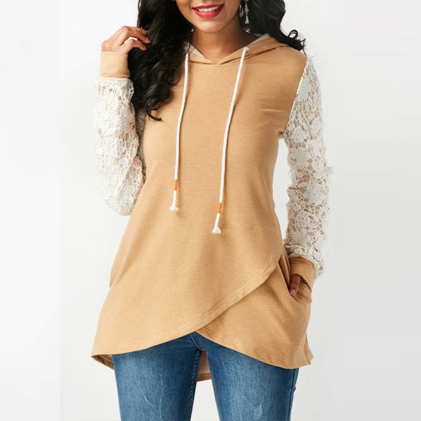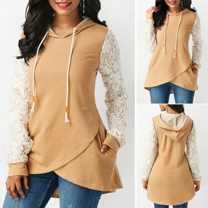 When the autumn comes,you can invite this long sleeve top to your wardrobe. The lace spliced long sleeve,