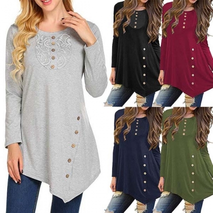 can offer you a comfortable day,while the lace spliced,irregular hem and buttons details will further enhance