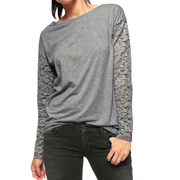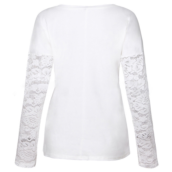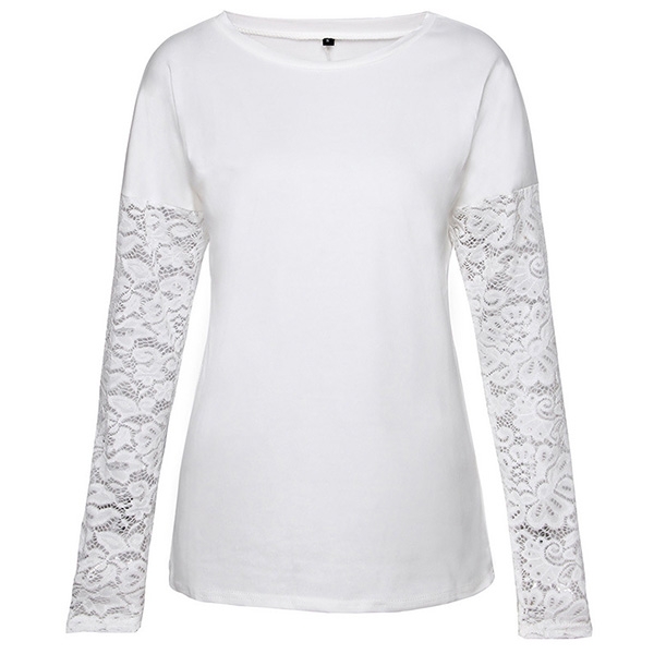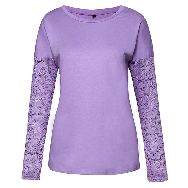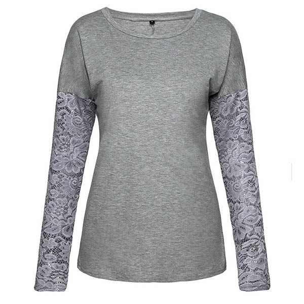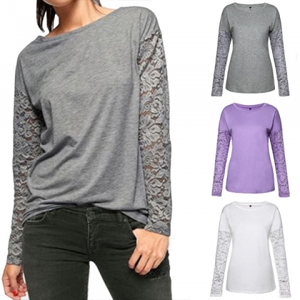Combines of cozy and style,this t-shirt is worth to arouse your attention. The lace spliced long sleeve design