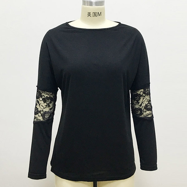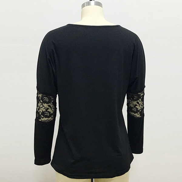 The flattering black tone and lace spliced design will enhance the charm of this t-shirt,while the soft