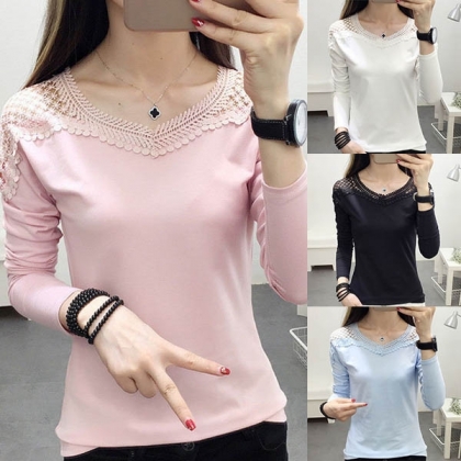 Comes with a solid color,with long sleeve and round neck design,the lace spliced design will enhance its charm.