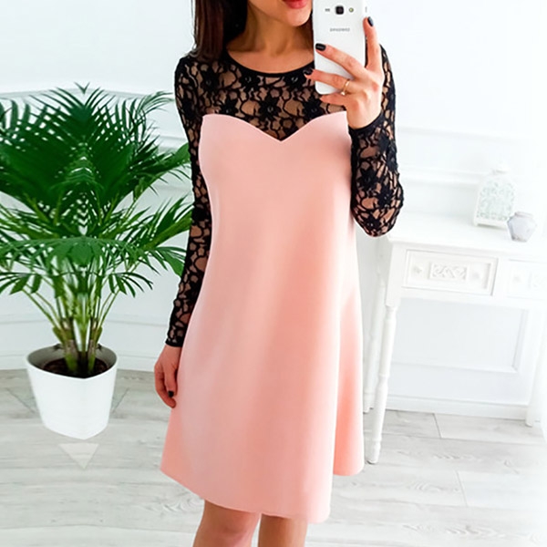 round neck and a loose silhouette,the lace spliced design will help exude your charming feminine appeal.