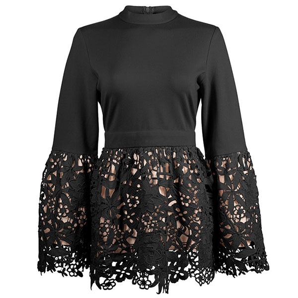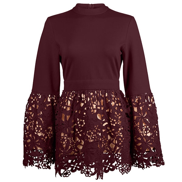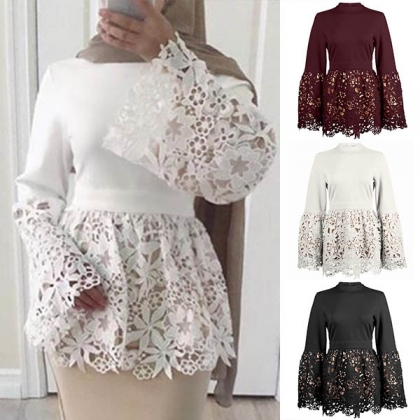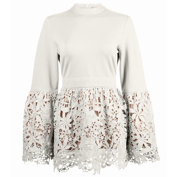 the lace spliced and stand collar design are the highlights. We thing matching with a tight pants would