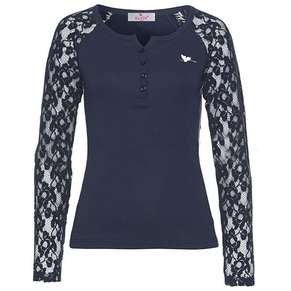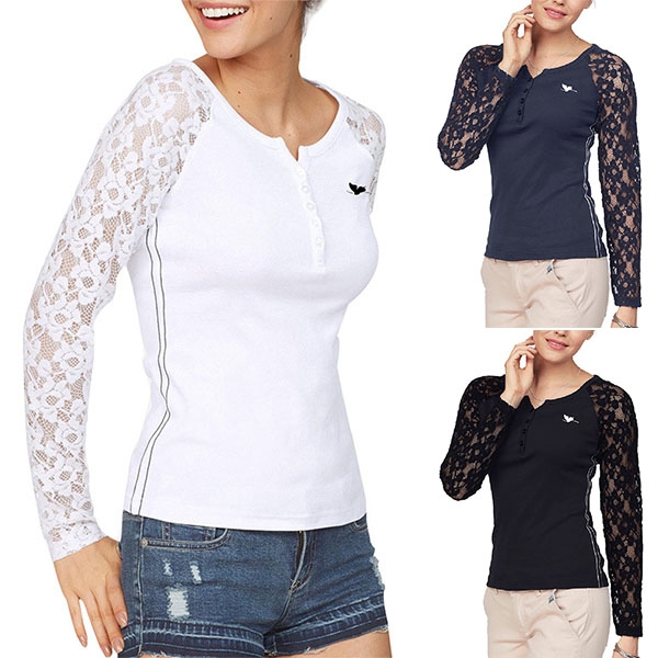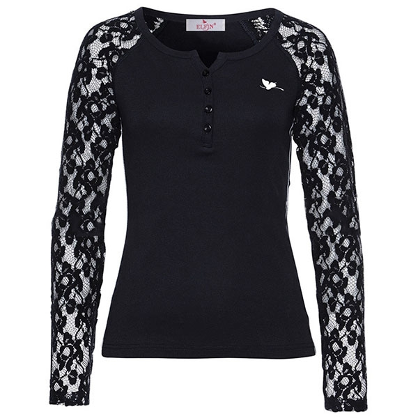 When it comes to a cozy yet feminine style,you can trust in this t-shirt. The lace spliced and little v-neck