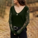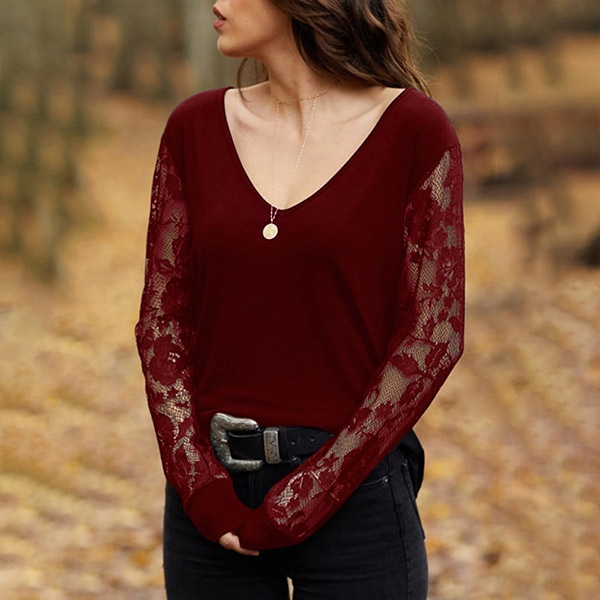 solid color,the lace spliced long sleeve and v-neck design will boost the charm of this piece. All-match