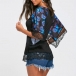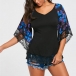 fabric can keep you comfy all day,while the v--neck and lace spliced printed trumpet sleeve design will