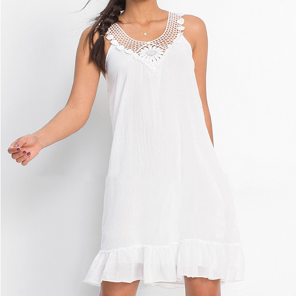 refresh dashes. The highlight design on this dress: the lace spliced round neck, which covers the sexy dash