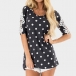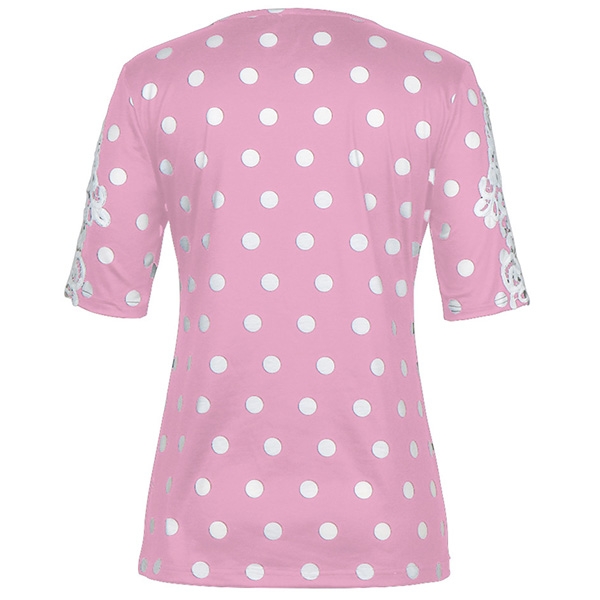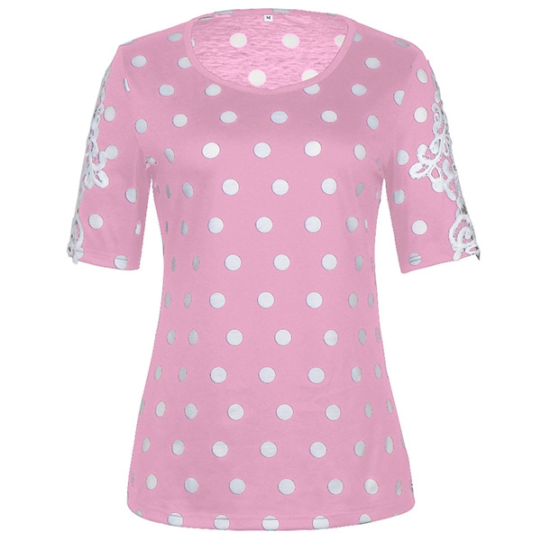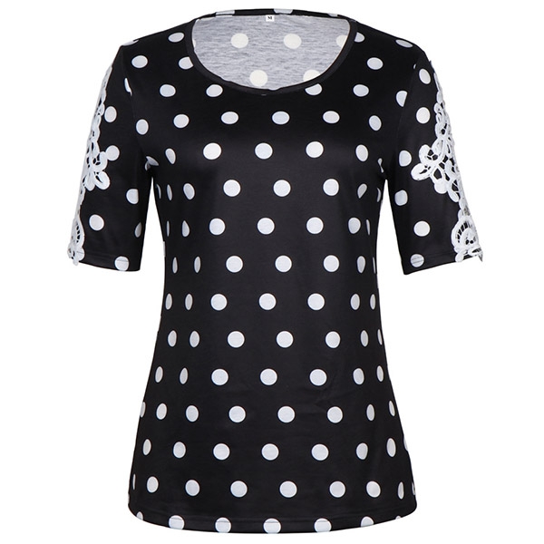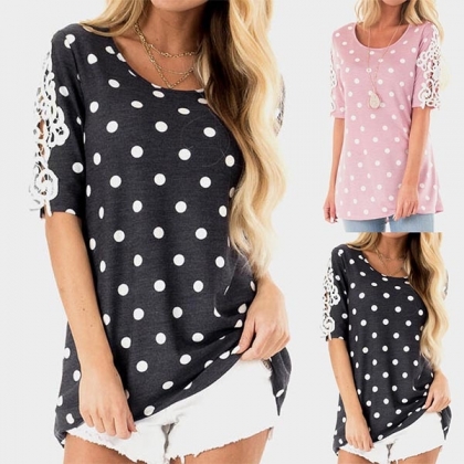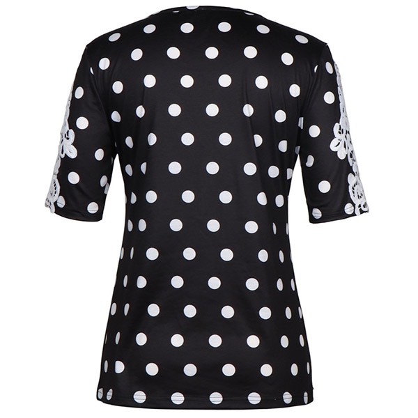 The lace spliced sleeve design is one of the highlights,while the dots printed details will further