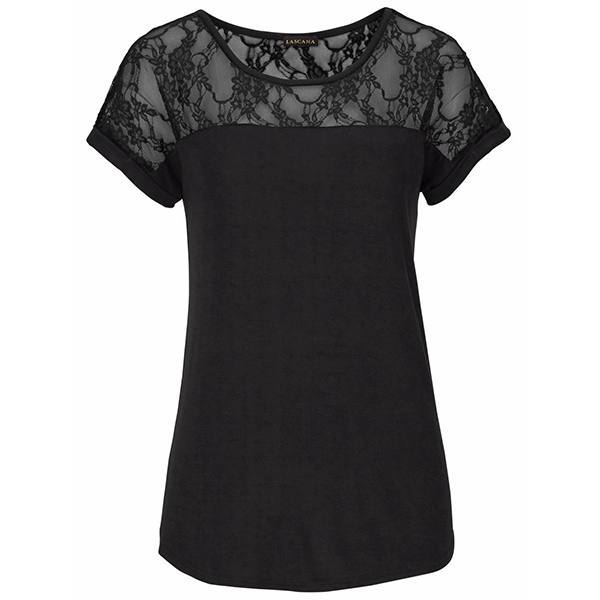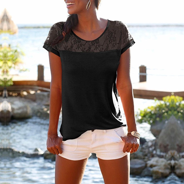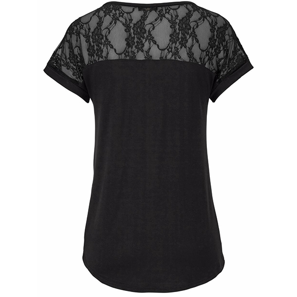 black tone,the lace spliced design will further enhance the charm. No matter what kind of bottoms you pair with,
