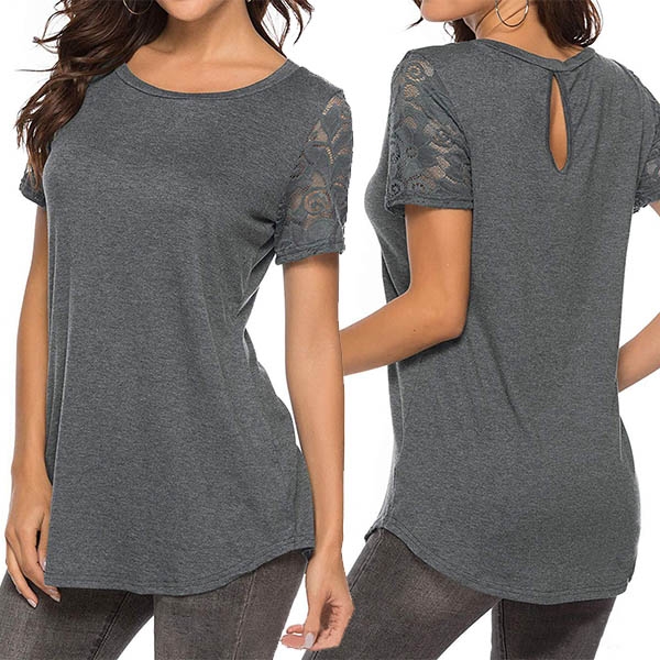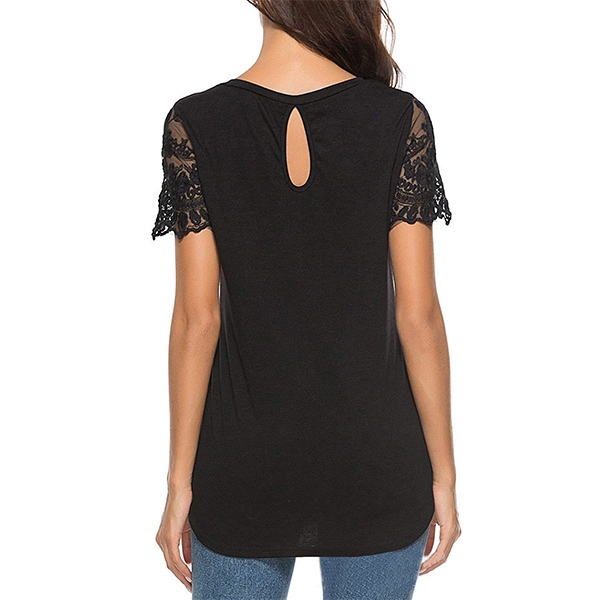 with short sleeve and round neck design,simple and classic. Moreover,the lace spliced design