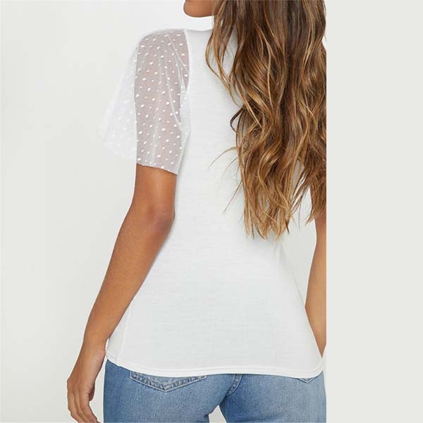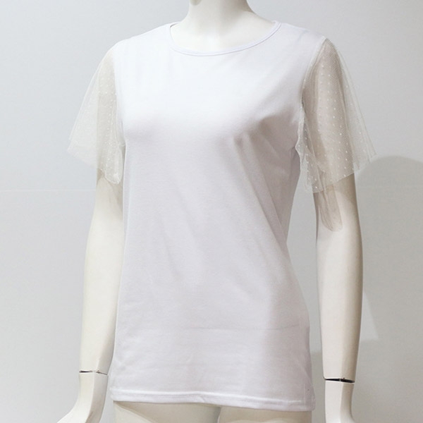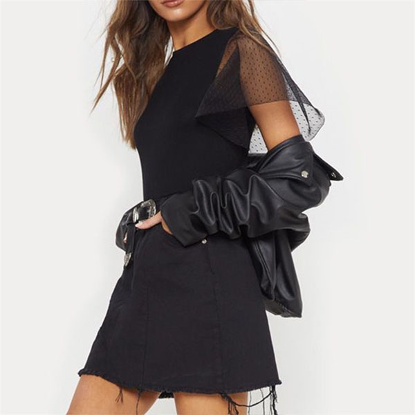 it look simple and generous,while the gauze spliced design at the sleeve part enhance its charm.