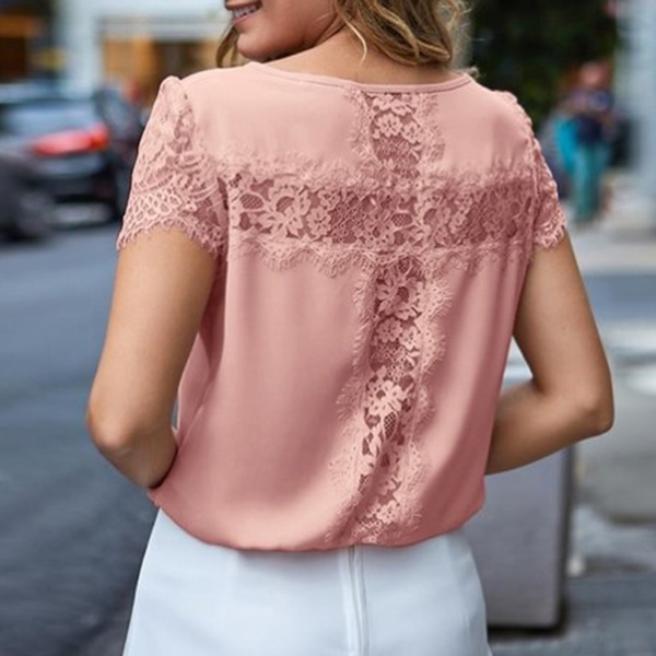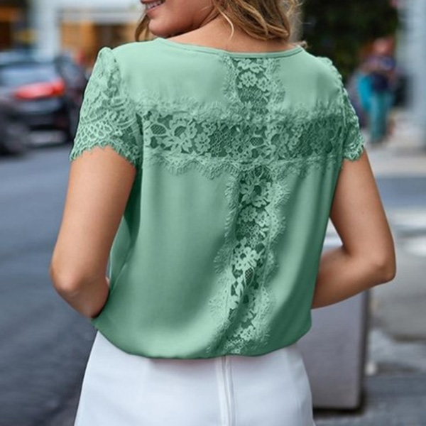 Solid color style,with short sleeve,round neck and lace spliced details,this piece allows to be matched