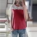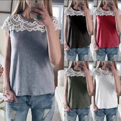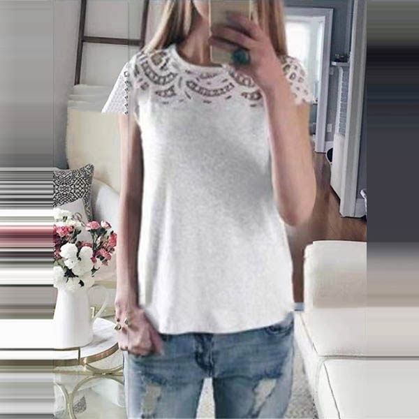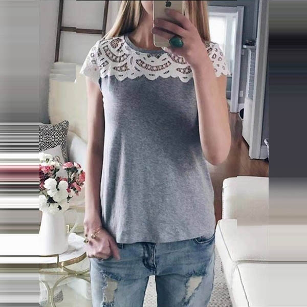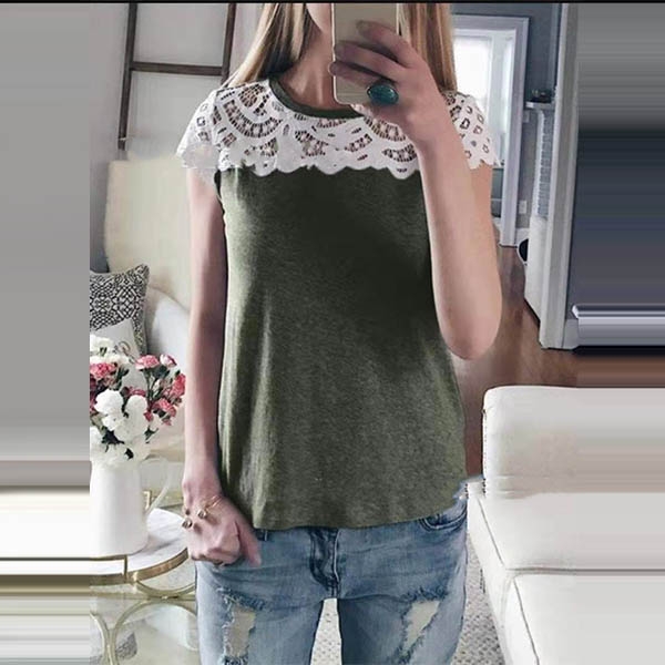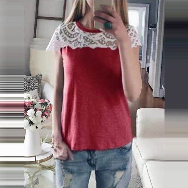 Crafted from soft and breathable fabric,with short sleeve and round neck design,the lace spliced