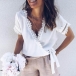 Your style can have an instant boost with the help of this top. Solid color style,the v-neck,