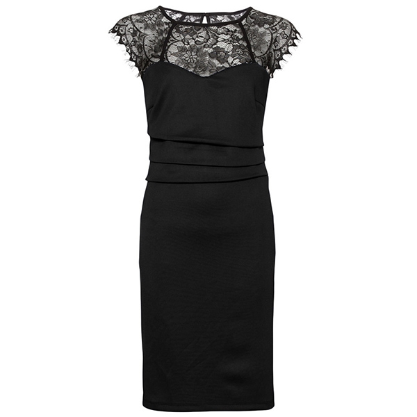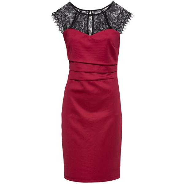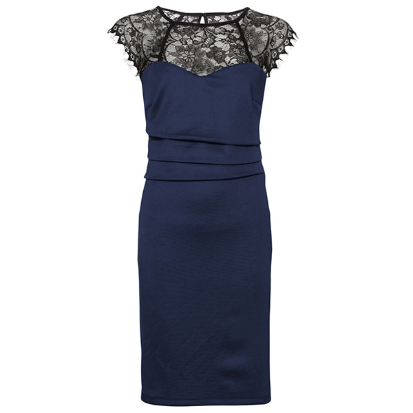 ,round neck and a fit silhouette,this dress can showcase your slender figure. And the lace spliced design will