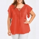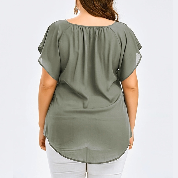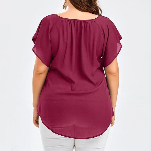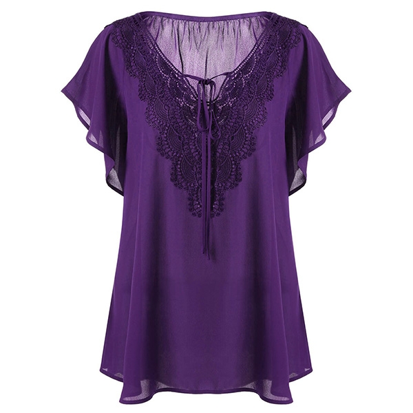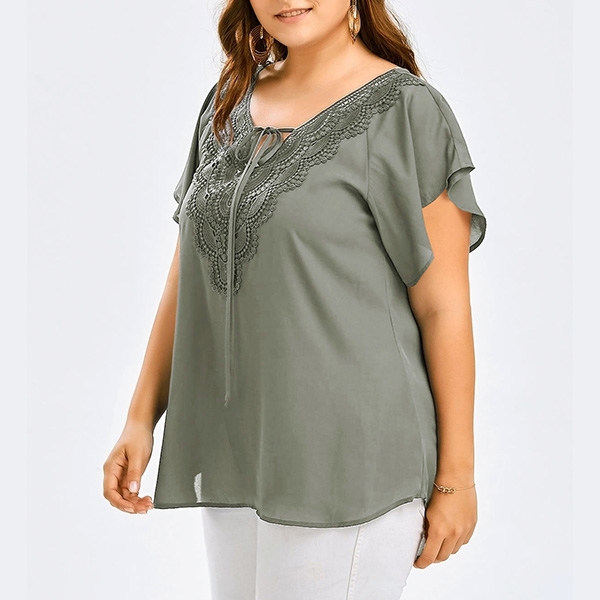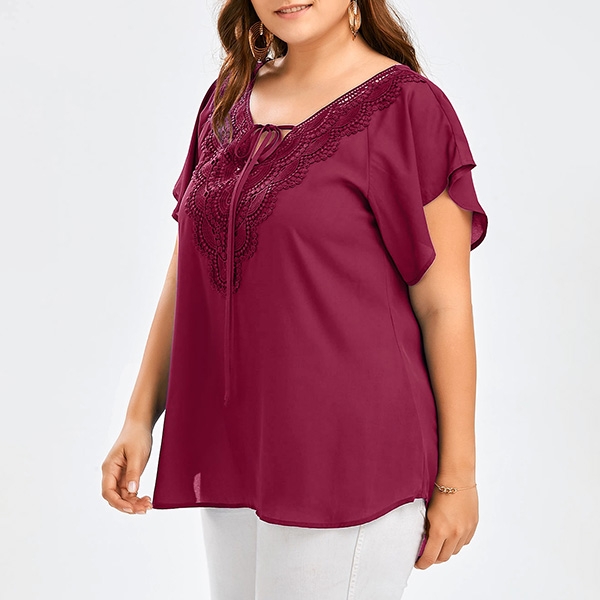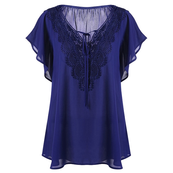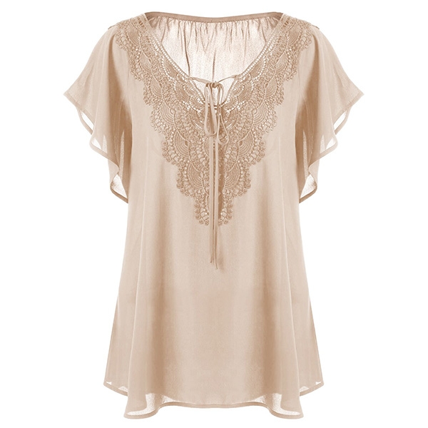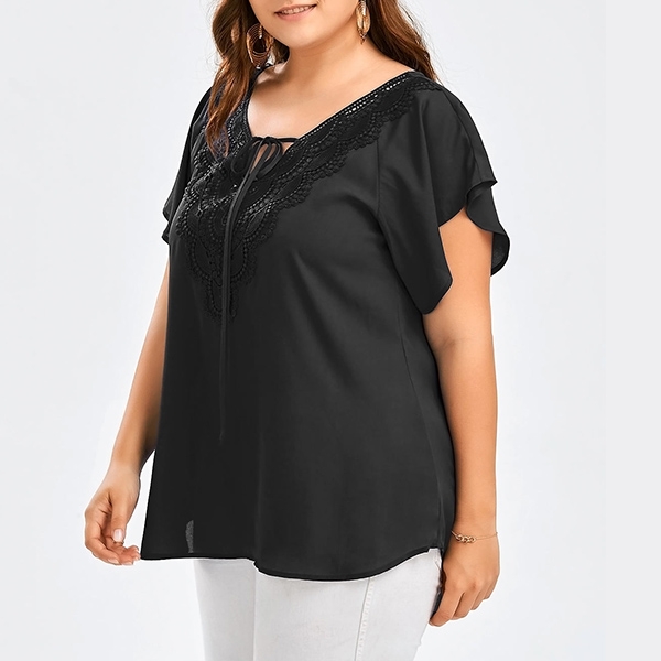 This tops comes with a solid color,with short sleeve,v-neck and lace spliced design,