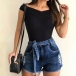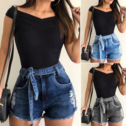 Fashion Lace-up High Waist Ripped Denim Shorts(It falls small)