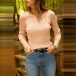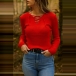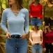 Fashion Lace-up V-neck Long Sleeve Solid Color Knit Top