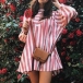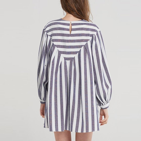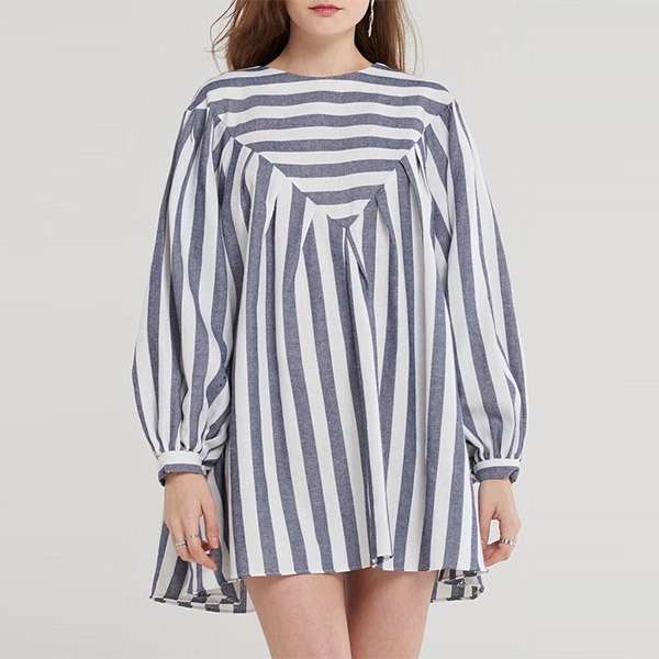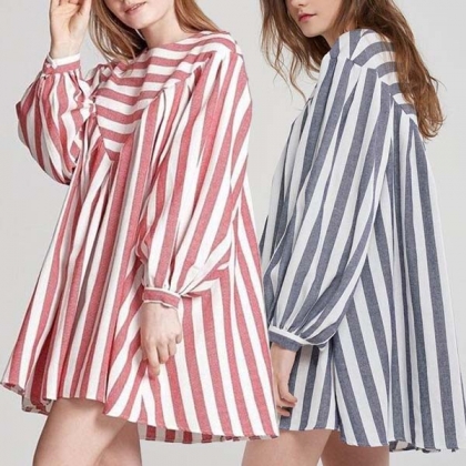 suggest you this dress. The striped element and lantern sleeve design make this piece look so attractive,