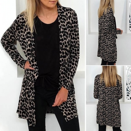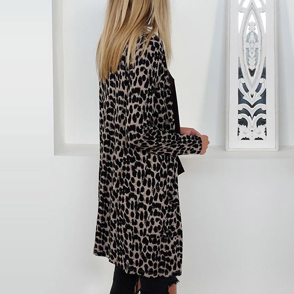 leopard print cardigan to your wardrobe. Finished with long sleeve and a loose silhouette,its soft