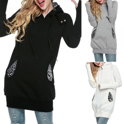 hooded silhouette and front pocket design,simple and classic,while the leopard print element
