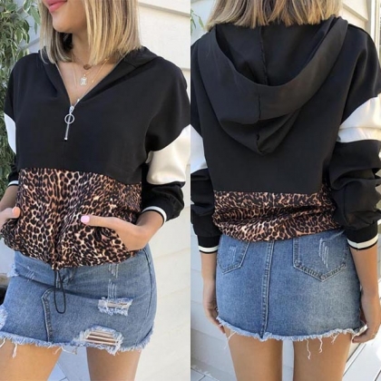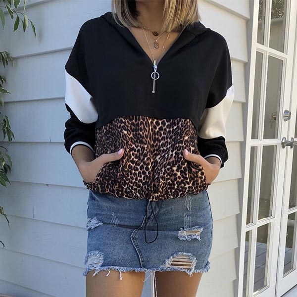 The contrast color element and leopard spliced details make this piece look more stylish and attractive.