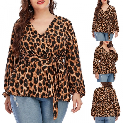Thanks to the chic and unique design style,this shirt can easily arouse more attention. The leopard spliced details make this piece look so attractive,and lace-up bow-knot design at the neckline part will further enhance its charm. Simply matching with your favourite bottom,then you can look charming and stylish enough!