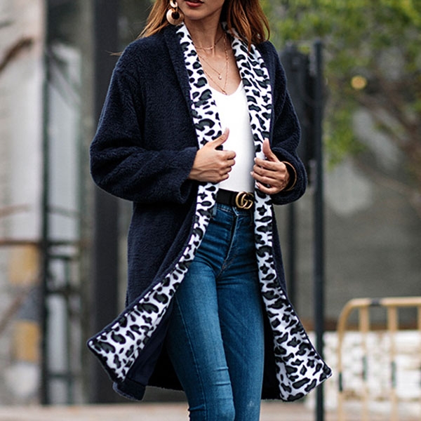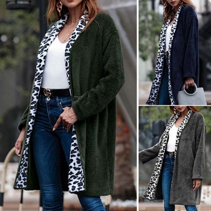 the leopard spliced design enriches the design style as well as boosts its charm. Just stay warm as well as finish a fashionable look with this cardigan.