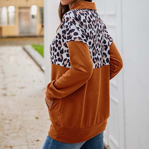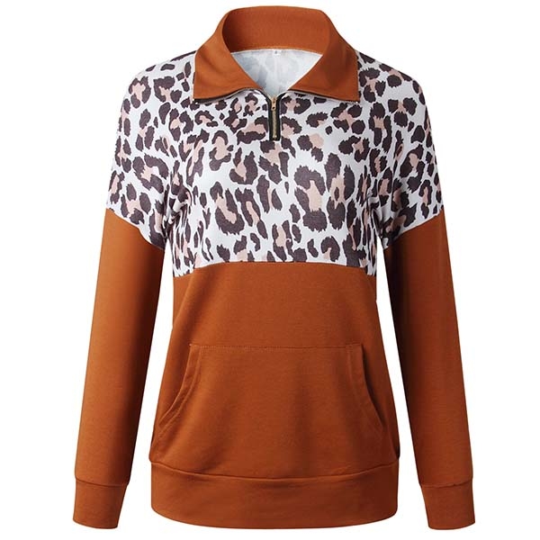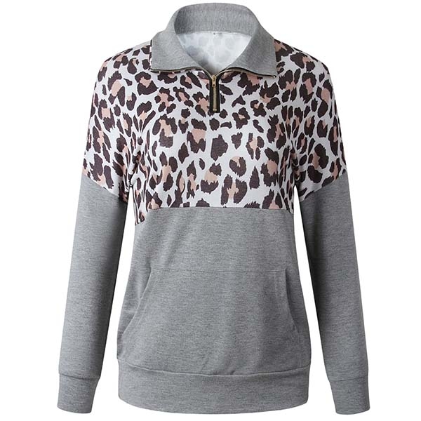 with long sleeve,stand collar and front kangaroo pocket design,classic,cozy yet stylish. The leopard spliced