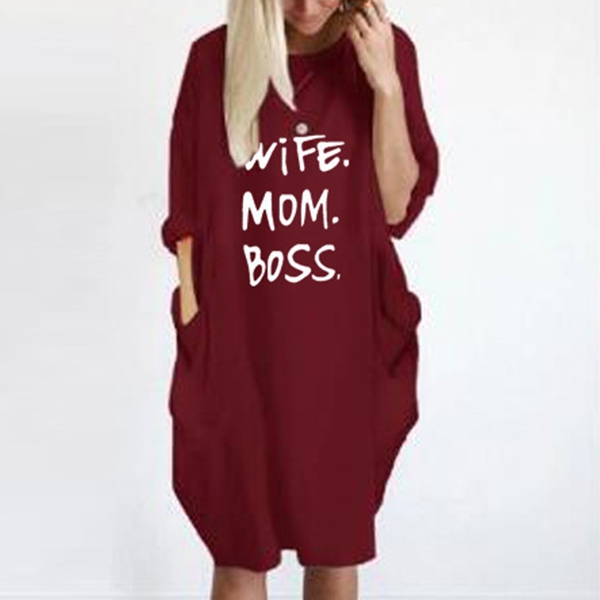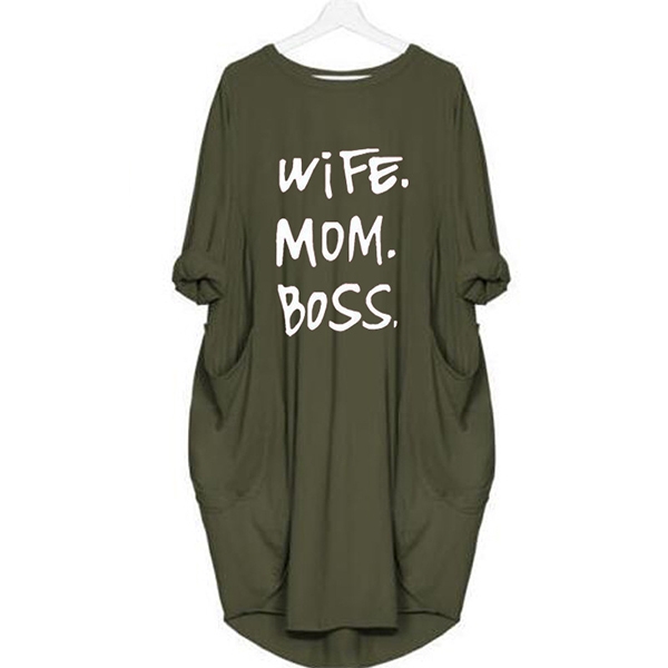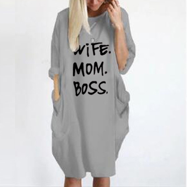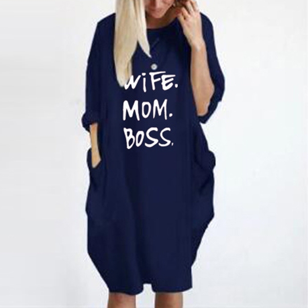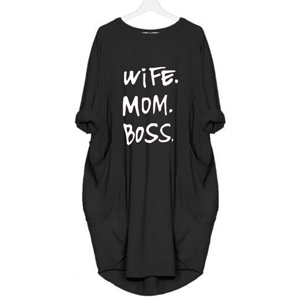 Fashion Letters Printed Long Sleeve Loose T-shirt Dress