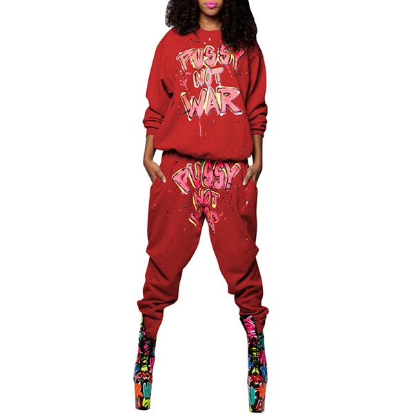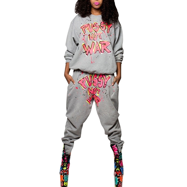 You can have a chic and unique street look when you wear this casual sports suit. The unique letters printed