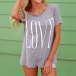 Front with "LOVE" letters print pattern,stylish and chic. Short sleeve and round neck design,classical