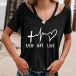 Its letters printed details and unique v-neck design make this piece look so attractive.