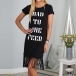 As regard to a chic look,you can rely on this t-shirt dress. Letters printed style,with tassel hem