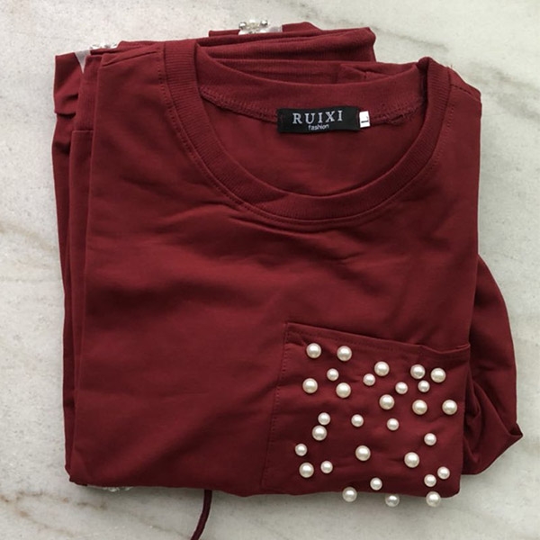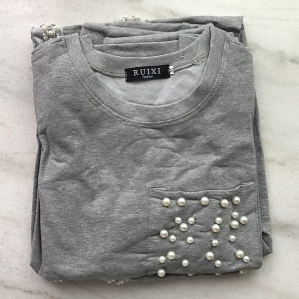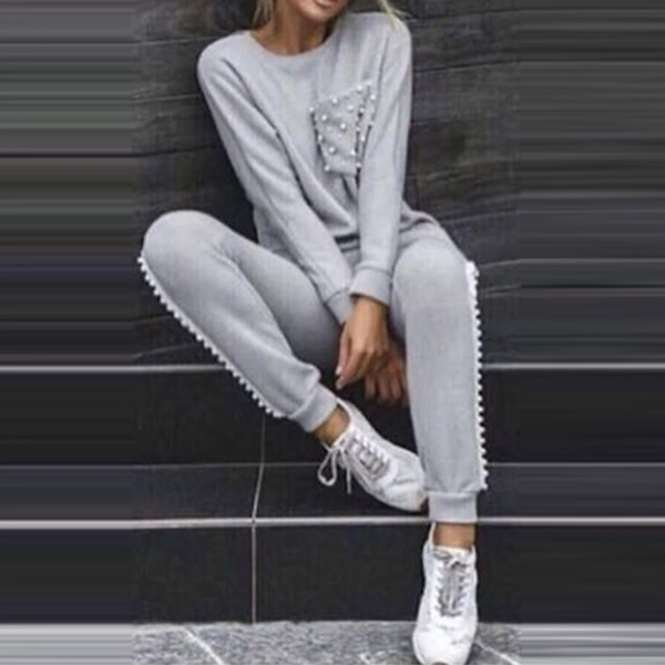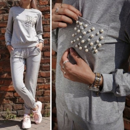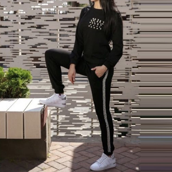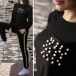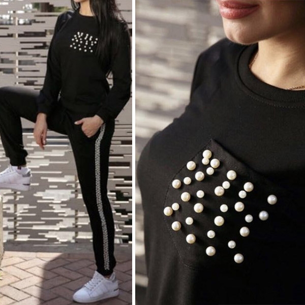 Fashion Long Sleeve Beaded Sweatshirt + Sports Pants Two-piece Set