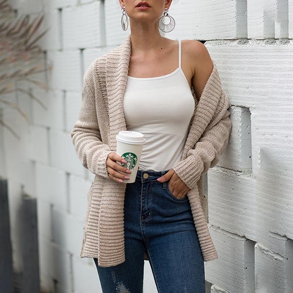 To greet those cold days,you can invite this knit cardigan to your wardrobe.Crafted in a solid color,