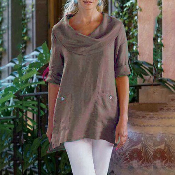 the cowl neck,irregular hem and front-pocket design make this piece look more attractive.
