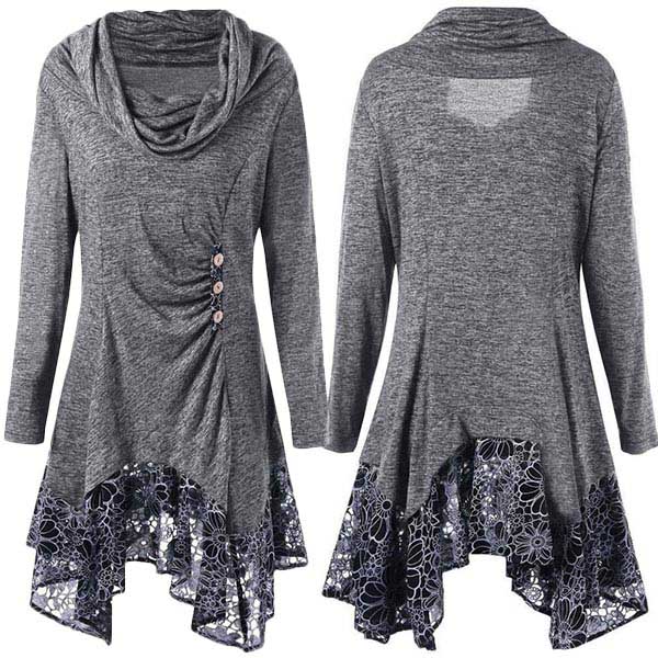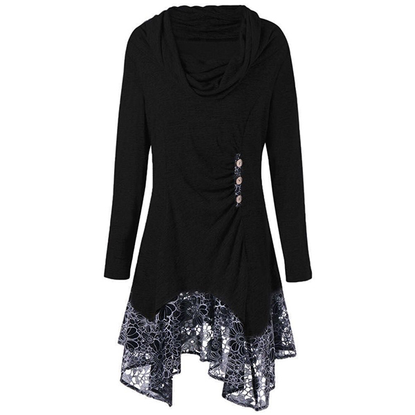 For an effortless fashionable look,you can count on this long sleeve dress. The cowl neck and lace spliced